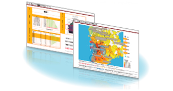 地理情報システム(GIS)を利用し、患者住所などの住所データの分布を"見える化"します。